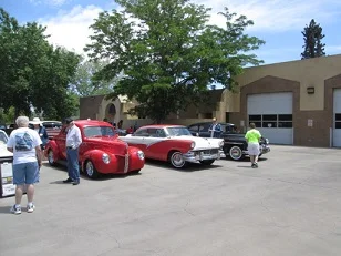 Things got off to a rocky start when our show area at the Los Ranchos Village Hall Parking lot was filled by modern vehicles from a bicycle touring group that had arrived much earlier. The bicyclists apparently picked our reserved spot by happenstance. Things worked out fine however and our club just parked everywhere else until they returned from their tour and left. The fire department volunteered half of their driveway. So although we were scattered into four mini-shows, the cool weather made the partial lack of shade and grass a non-problem.